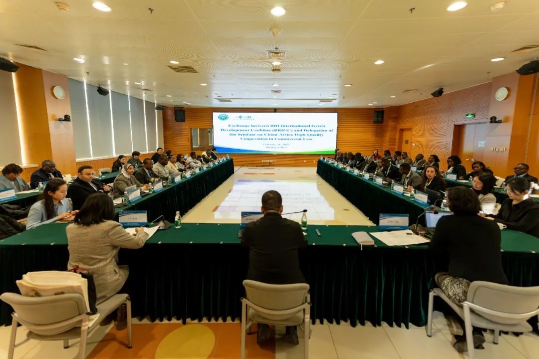 2025年2月24日,“一带一路”绿色发展国际联盟(以下简称绿色联盟)联合中非民间商会,在商务部国际商务官员研修学院的支持下,与中非高质量合作商事法律研修班学员在京开展交流活动。绿色联盟负责人、首席发展总监,以及生态环境部对外合作与交流中心、中国质量认证中心等联盟合作单位专家参加会议。来自埃及、尼日利亚等7个非洲国家以及非洲联盟委员会的35名政府官员和技术人员参与交流。