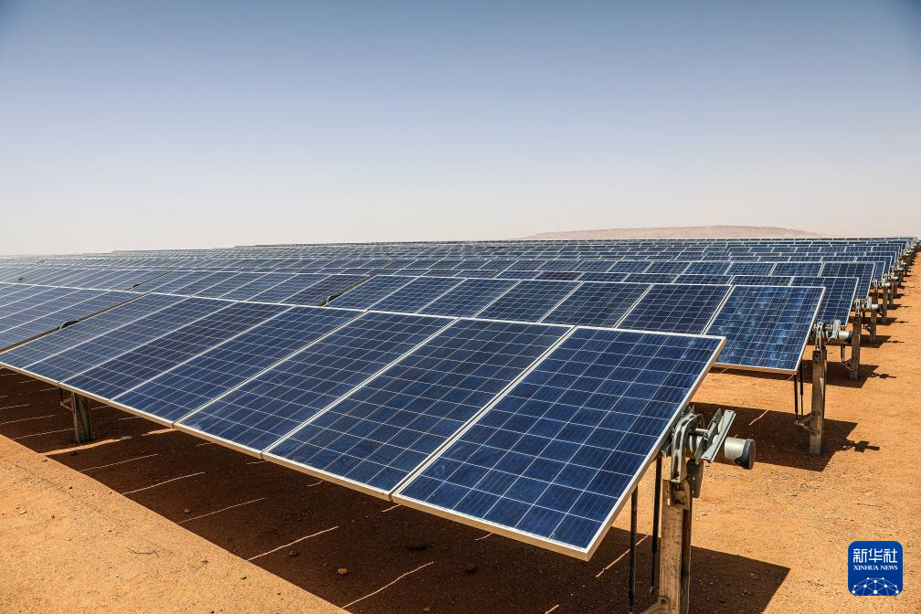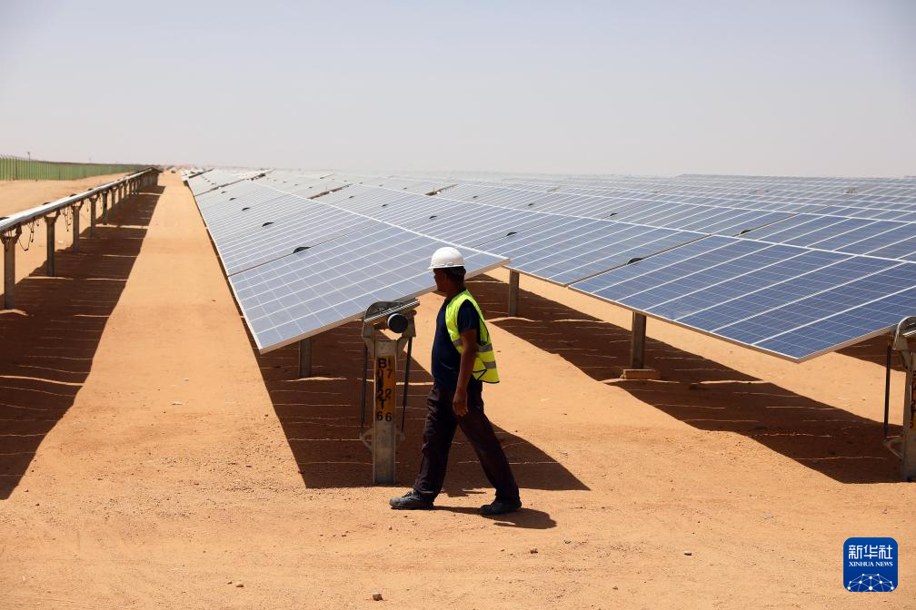 在埃及南部阿斯旺省沙漠腹地的本班光伏产业园内,一排排光伏面板将充沛的光照资源转化为当地居民生产生活离不开的宝贵电能。